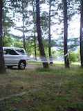 場所は西湖レークサイドキャンプ村。場所の予約がないところなので、場所取りの先発隊として5時に出発。