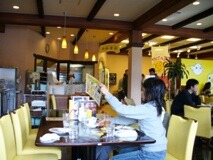 和風サーモンチャーハン。サーモンとお漬物のチャーハン。これもさっぱりでおいしい。オレはかなり好き。しかし、頼んだ本人は漬物が苦手なので苦戦。