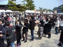 お昼、宮島の桟橋で開かれている、かき祭りへ。いろんなお店が出ているのだが、みんな大行列なのであきらめ、商店街にあるお店へ。かきとじ丼に、カキフライに、生かきに、焼きかきとかき満喫。やっぱり生かきが一番。