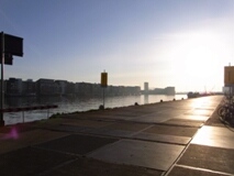 アムステルダム中心は場所がなくなってきたから、少し外れたこのあたりを再開発して住居やオフィスビルを建てているらしい。どれもデザインが面白い。フロア構成がどうなっているのかわからないような並びをしてる窓のビルに、タイルを斜めに貼ってささくれ立っているみたいに見える壁のマンションなどなど。奇抜なデザインなんやけど、色合いなのか落ち着いて見えるから不思議。