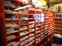 郵便局では、サンタ村の消印を入れてくれる手紙を出すことができる。ポストは、すぐに届くのと、クリスマス近くに届くのと2種類ある。本日のんにだしてみた。