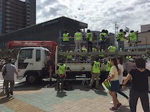 駅から市役所までの歩道はものすごい人だかり。旗もらったけど、宣伝とか入ってないし、手作りっぽい。こういうイベントは、みんな幸せで良い。