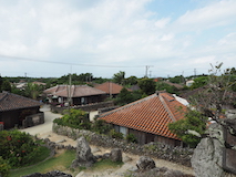 世界遺産の読谷村の座喜味城跡へ。ここは沖縄の焼き物やちむんの里近く。