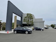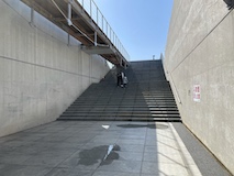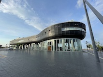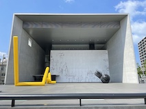 丸亀駅前に戻り、丸亀市猪熊弦一郎現代美術館ことMIMOCAへ。駅前にでーんと巨大で前に長く出ているファサードが圧倒的な建物。
