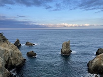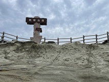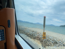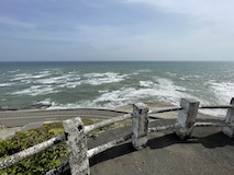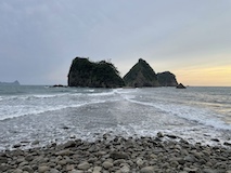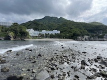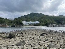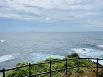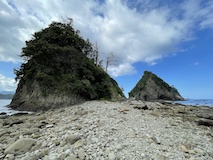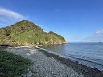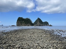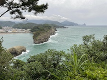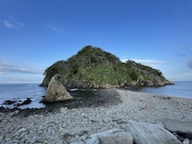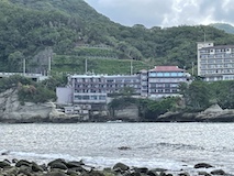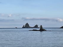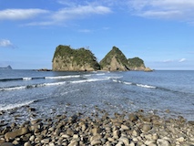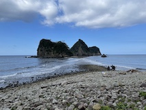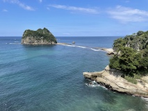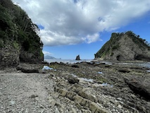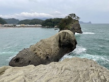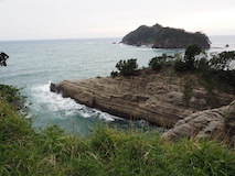 浮島海岸へ寄る。海岸からはいわゆるゴジラ岩が見える。遠いし小さい。