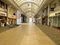 商店街がとっても広く、とくにアーケードがあるのに道幅がとても広いのが印象的なのだが、やはりシャッター街なのが残念。