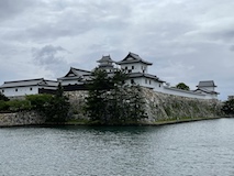 今治城へ。今は埋め立てた港があれども、海城ということでかつては3重の堀が海につながっており港になっていたそうで、今でも堀の幅がとても広く、また石垣ががっしりしてる印象。