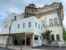 中心地へ戻る。ギザギザ側面が印象的な今治市公会堂。丹下健三作品とのこと。今治が丹下さんの育ったところということで丹下作品がいくつか見られるのも今治のいいところ。