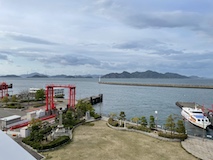 今治港へ。再開発が進んでいるそうで、ランドマークの黒い船のような形のみなと交流センター「はーばりー」が印象的。