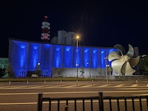 宿への帰り公会堂のライトアップが派手でびっくり。