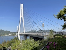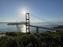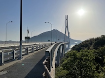 多々羅大橋の途中で、広島県に入り、レモンの島、生口島に上陸。