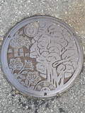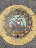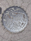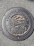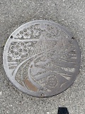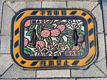 宮浦の中心から港まで散策。古い街並みに、柑橘系もあるブリュワリーに大三島産の葡萄を使ったワイナリーと新しいものもある商店街。で、蓋が豊富。