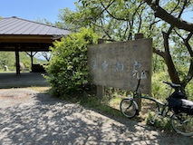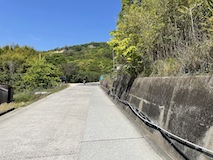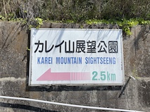 今度は大島の北側にあるカレイ山展望公園へ。少し上りだして2.5kmの看板。またほとんど押して登る。
