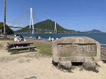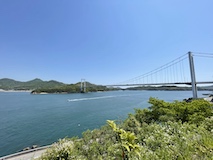 しまなみ海道の大型の拠点の一つ、道の駅 伯方S・Cパークへ。ここで昼食と思ったがやたら混んでるのでスイーツ三昧。さすが伯方島で伯方の塩ソフトに、100%きよみドリンクなどいただき、ゆっくり日陰で休憩。
