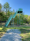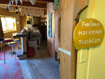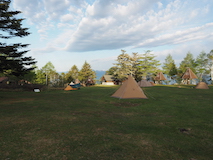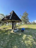 管理棟でチェックインを済まして、フリーテントエリアにあるキノコキャビンで泊まる。なんでそうしたのかわからないけど、わざわざピラミッド型の小屋を1本柱で浮かせたキャビン。下で料理とか作れるので便利。