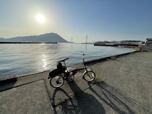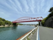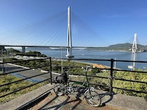 昨日はさーっと通り過ぎたけど港などにも寄りながら多々羅橋を目指す。朝は気持ちがいい。