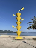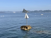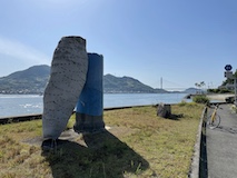 生口島はビエンナーレが開催されており、その屋外作品が島ごと美術館という恒久展示されていて、サイクリングがてら楽しめる。