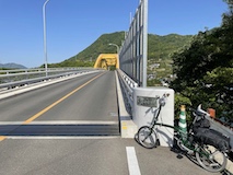 そして大島へ向かう。橋は、車道と、小型バイク・軽車両・歩行者のレーンが完全に分かれているので走りやすい。