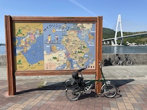今治駅からサイクリングロードは80km, 展望台とか御三島で宿泊とか、別の島まわったりでルート外れが40kmほどで、ざっと120km。1日半あったのでゆっくり回れた。