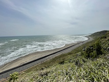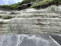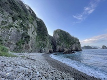 ここも砂州があったりするのだが、みる限り柱状節理な岩が崩れてできた石の海岸なのだが、まんまるの石がゴロゴロしている。ここまで削れるのにかなり時間かかったのやろなというジオスポット。ここは隠れたいいスポット。