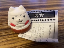 で、早太郎としっぺい太郎のおみくじの人形を並べることができた。