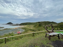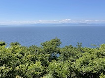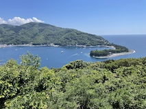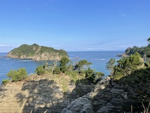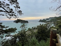 で、最後に出逢い岬から御浜岬を眺める。たしかに、大瀬崎と似ている。