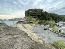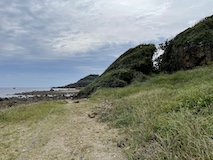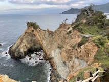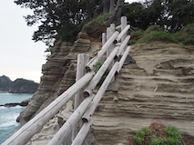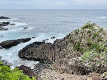 南東に向けて伸びる岬だが、南西は見事な柱状節理が見られるほど切り立っており荒く、北東は海水浴場があるほど浜になっていて穏やかと、海の流れがよくわかる。