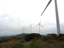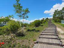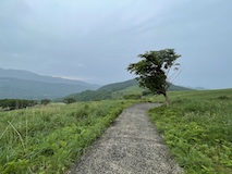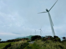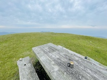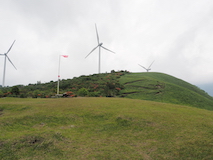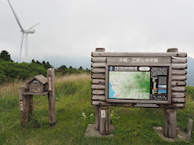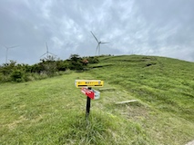 細野高原へ。浸食し残された高原で水捌けの悪い泥が積み重なってできた湿地高原のジオスポット。ツリーハウス村をすぎると、木がほとんどなく草原とススキが一面に広がっている。ぽいんと5の駐車場から木の階段を10分もかからないで絶景の丘に出る。天気はイマイチでも遮る木などない開放感がいい。ここまでだとゴルフ場なければなぁと感じてしまう。で、ひさしぶりの風車群もいい。コーヒーもうまい。