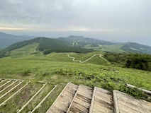 道の駅から山を一気に登り、鹿嶺高原キャンプ場へ。結構登るのだがほぼ離合できる走りやすい道で走りやすい(ちょっと物足りん)