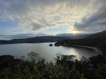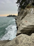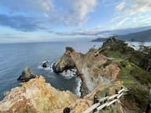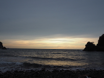 早朝日の出前に露天に入り、黄金崎へ。ちょっと天気悪いけど海側は晴れてていい。