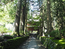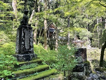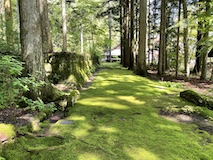 変わらず細く伸びた参道の影になったいる感じがいい。苔も厳つい系の霊犬早太郎も健在。