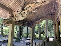 麓の長谷にある重要文化財の熱田神社へ。小さな集落を見守るような親しみある佇まいに見えて江戸中期に造営された豪華な本殿が国指定重要文化財となっている日本武尊を祀る神社。本殿は保護のため覆い屋のなかにあるのだが、藩ではなく村の住人が費用を出して造られたのだそうで、いまでも親しまれているように見えるくらい、綺麗に保たれている。