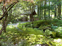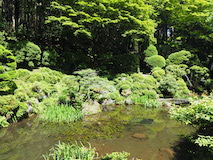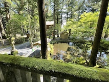 せっかくなので光前寺の本坊の庭園にもおジャマする。こちらは池と苔を縁側(?)から眺める感じがいい。