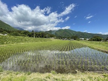 光前寺周辺の田圃はちょうど田植えが終わった感じで空が映る感じがよくって周辺を少し散策。