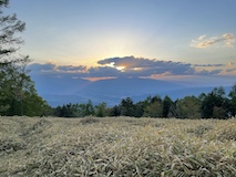鹿嶺高原キャンプ場は、南北に伸びる山の尾根にあるので、昨日の夕日だけでなく朝日も見られる。晴れてよかった。最高。