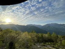 標高1800mの尾根にあるキャンプ場なので少し歩くと絶景が見られる。少し西が曇っていたので日の入りが見られなかったけど、まあ、満足。