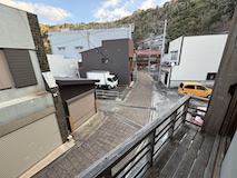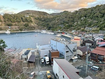 宿の部屋からの港町。このちょっとしたベランダがいい。港町の端っこにあるお店のコロッケがいい。