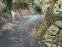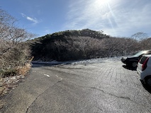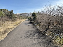 三原山登山口からはしばらくアスファルトのほぼ平坦な舗装路を進む。外輪山ってかんじ。