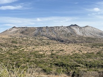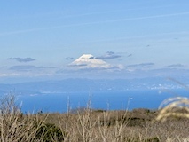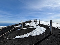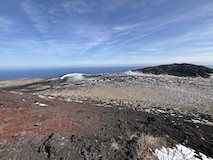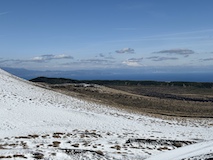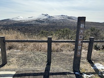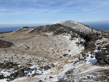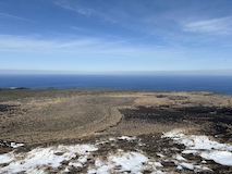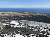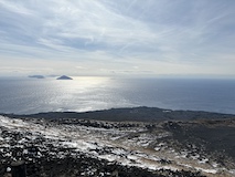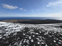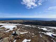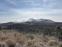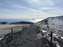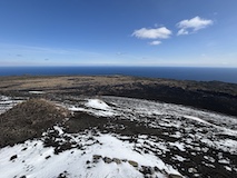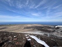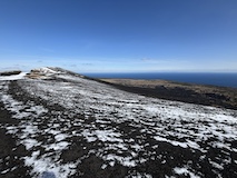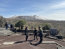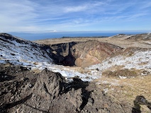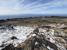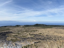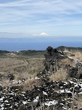 つぎに三原山へ移動。途中の新火口展望台からは、こちらでは山の上とは思えないくらい黒い平原越しに三原山にB火口列。逆を見ると相模湾越しに富士山。めっちゃいいとこ。