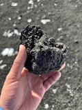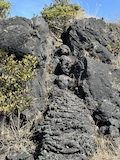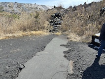 途中道を逸れたところの安永溶岩丘群に縄状やお餅のようなパホイホイ溶岩がある。パホイホイ溶岩はハワイ語で滑らかな溶岩とおう意味で、まさにそういうのが流れてきて固まったんやなという印象。とくに高さのある岩なんかを見ると、完璧に固まっているのにどろーっと流れ出てきたままの迫力あるものもある。