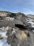 お鉢巡りしてすぐ、「ホルニト」と呼ばれる溶岩洞窟の入り口がある。危ないので入れないがこれも溶岩が冷えるタイミングの違いで生まれたのだろう。不思議。