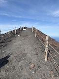 そして本格的なお鉢巡りに入る。海を見れば伊豆諸島、内側を見ればでっかい火口。直径350mに深さ200m。これが1986年の噴火で埋まり、1987年の噴火の際に再生?したのだそう。たしかにニュースで見たな。