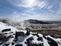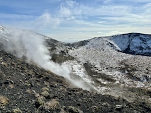 で、やはりこちらも雪が残っているのだが、風があたらないところだけ残っているなど、そういうとこまで地形の妙を見られた。しかし、積もっているところがめちゃめちゃ積もっている。そしてそのすぐ横では地面が温かく、さに場所によっては水蒸気が上がっている。大自然。たっぷり説明聞きながらでも2時間半で満足。