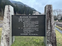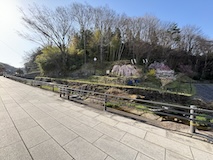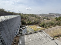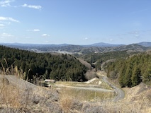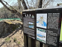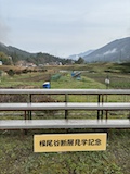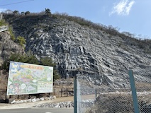 薄墨公園から少し南に走り、こちらも気になっていた根尾谷断層地震断層観察館へ。といってもまだ時間が早いので空いているわけなく、周囲を見て回る。近くで見ると土手かなと思うが、少し離れたところの展望広場から見るとここでズレたんだなとわかるくらいの段が走ってた。