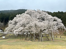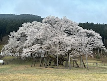 今年も桜の季節が来たので、一本桜巡りに。三代桜の1つ、岐阜の根尾地区の根尾谷薄墨桜。混んできたら嫌なので日の出前にと思ってたどり着いたまだ5時過ぎやのに数台の車が止まってた、まあ車中泊組かな。樹齢1500年ほどのエドヒガン。低いところから高いところまで見事に咲いていて、支えは必要みたいだけど神代桜と比べると折れている感じがなく、まだ元気に見えた。薄めのピンクもいい感じ。こちらの公園にはいくつかの種類の桜がある。