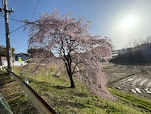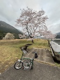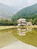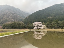 根尾谷にもいくつか名前をつけられている桜があり、ブロンプトン持ってきたので見て回る。そのなかの一つで田んぼの中に立っている神龍桜。大きいわけではないが、田んぼに反射する逆さ桜も見られていいところ。