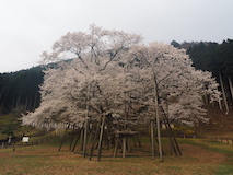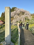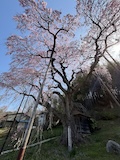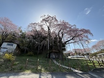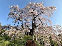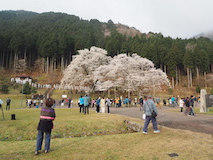 ほぼ滝桜のところまで戻ってきて、さらに奥にある紅枝垂地蔵桜へ。こちらは樹齢400年で滝桜と比べると小ぶりに見えるが十分でかい濃い桜。