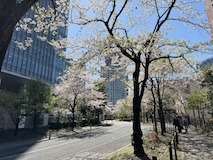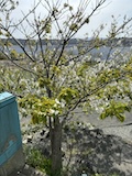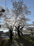 日が登ってくるにつれてだんたん変わってくる色味を楽しみつつ、桜の周りをくるくる回る。どっちからみてもみごとな桜。とにかく横にでっかくみえ、さらに垂れている様が綺麗。6時前やのにだんだん人も増えてきた。