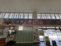 駅に到着。もうつかれた。さすが桜の街で小さい駅ながら桜情報満載。駅の周りの桜がいっぱい。で、2駅先の郡山駅に戻って車借りる。