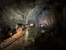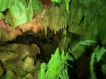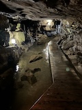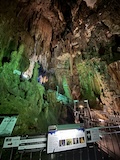 あぶくま洞へ。鍾乳洞の種類の多さでは東洋一とのことで、奥行き高さも十分大きい。また、賛否分かれそうだがこちらは鍾乳洞では日本で初めて舞台演出用の調光システムを導入したとのことで、カーテンや妖怪の顔に見えるなどが上手く見えるような光の演出が行き渡っている。さらに、通常コースに加えて探検コースというところがあり、天井がとても低くかがまないと通れない、飛び石を渡るなどちょっとした洞窟探検感が味わえるのもいい。じっくり1時間弱楽しめた。